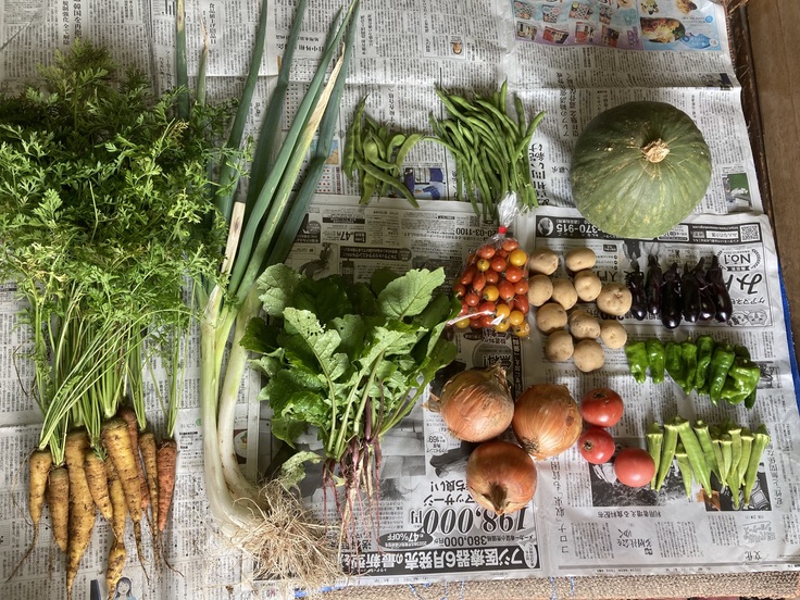 今日は朝早くからお客様にご提供するお野菜の準備に始まり、お米の脱穀と馬小屋制作の続きを日が暮れるまで行いました。