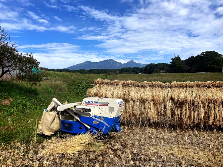 ほとんど風もなく穏やかな秋晴れのもと、今年最後のケミカルフリー米を脱穀となりました。