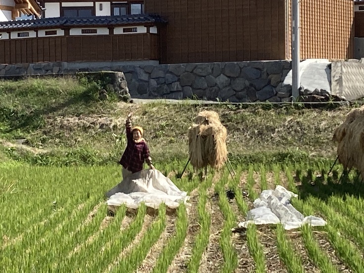 椅子には束ねたばかりの稲藁をクッションに🎵