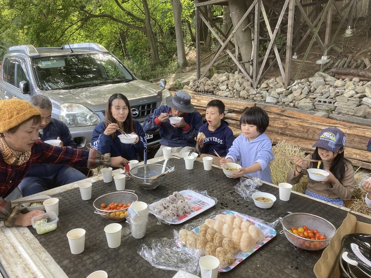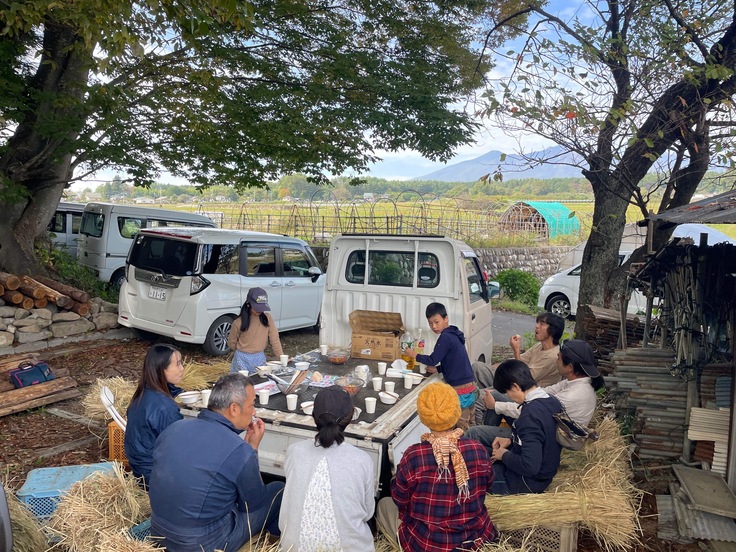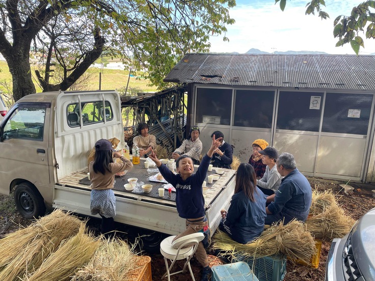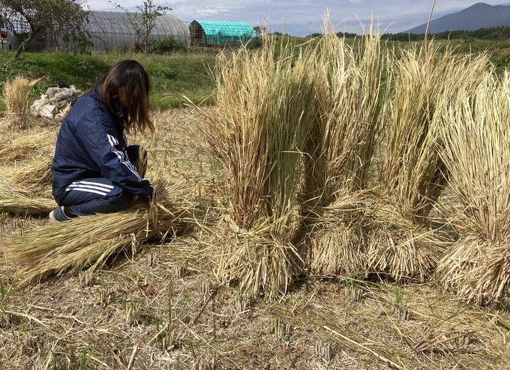 今回も助っ人さん達がお越しになり、稲に被せていたビニールを畳んでくださったり、稲藁を束ねたりしてくださいました。