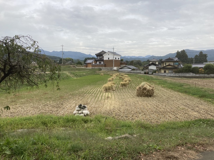 今夜から雨が降る予報のなか、全ての脱穀を終え、天日干しに用いていた資材も全て撤収、その上稲藁も全て束ねられました。