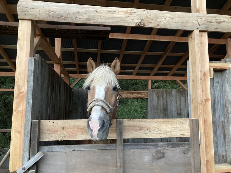 その後も馬小屋制作は順調に進み、本日無事に二頭のお馬さんを迎える運びとなりました。