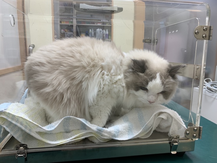 ▼3/9 食欲がほとんどないのと水を飲んでいる姿をいつもより見かけないので、朝から最初に診察してもらった近所の病院に行きました。他院のレントゲン写真をみてもらい、こちらの先生も同じ見解でした。やはり確定診断のためのCT,MRIによる検査が治療には必要とのこと。