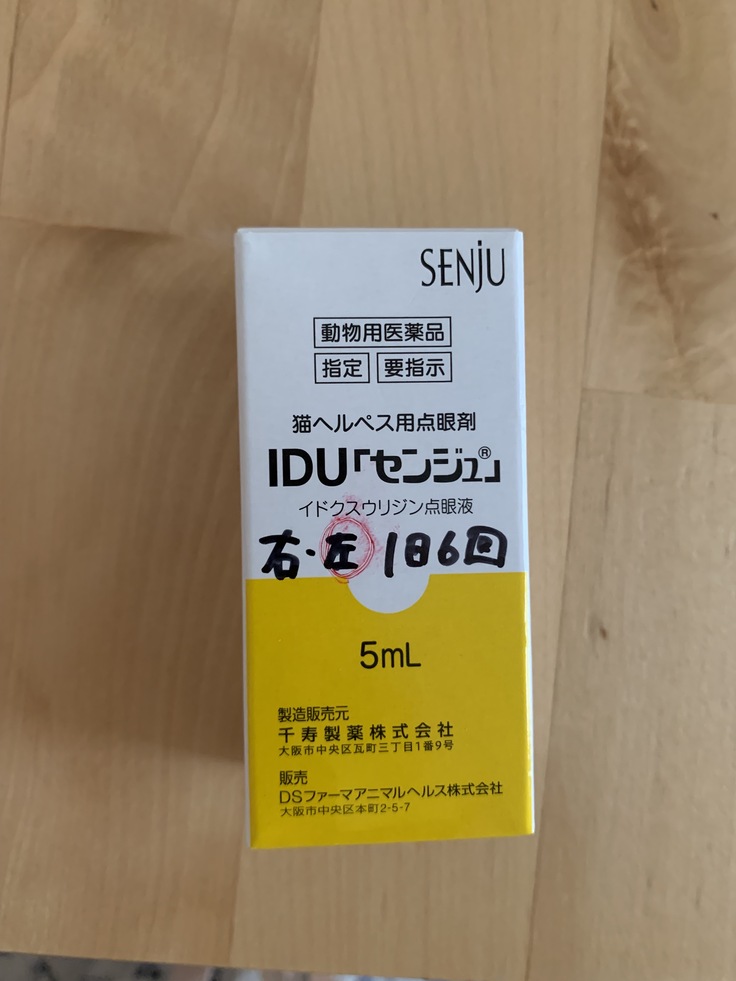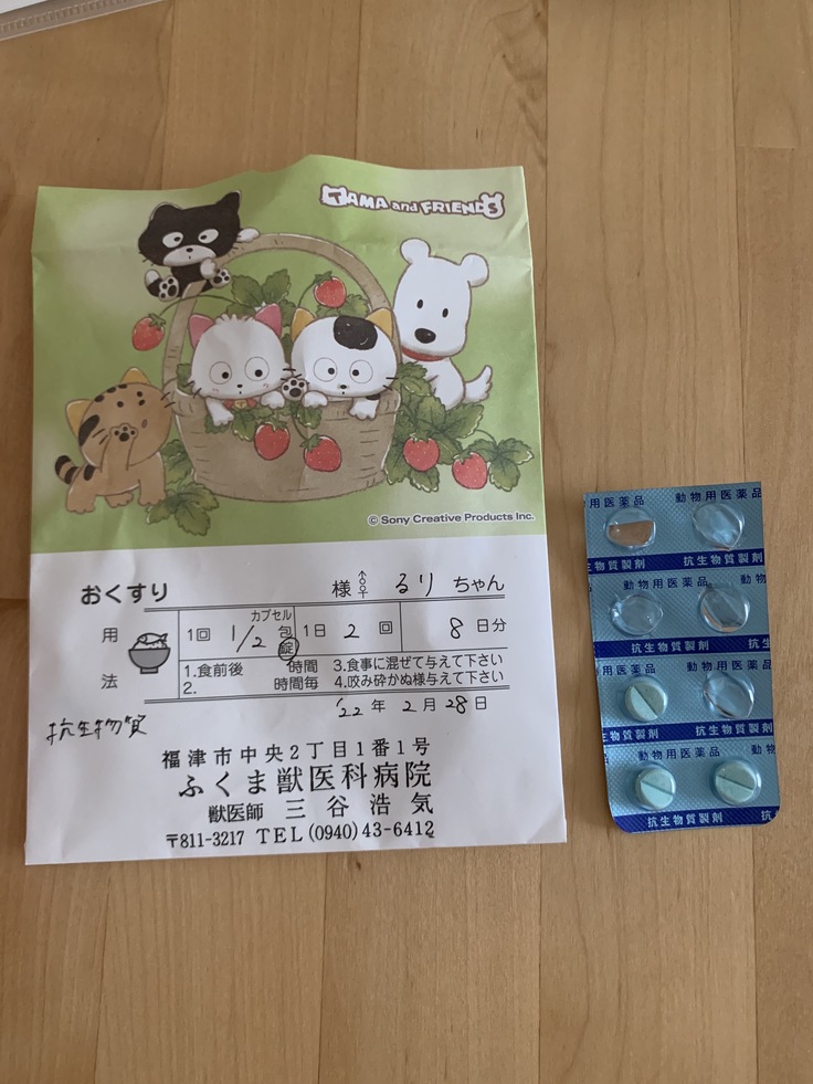 ▼2/9 症状が収まらないのでとりあえず近所の動物病院を受診しました。軽い視診の結果、”猫ヘルペスウイルス(猫かぜ)との診断をうけ、内服薬と点眼薬で様子をみてくださいとのことでした。