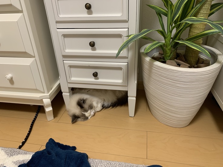 ▼3/7 同じ症状。チャオチュールはかろうじて食べてくれますが、いつもはおしゃべりなのにほとんど鳴かず、暗い部屋の隅か、ものかげに隠れるように寝ています。
