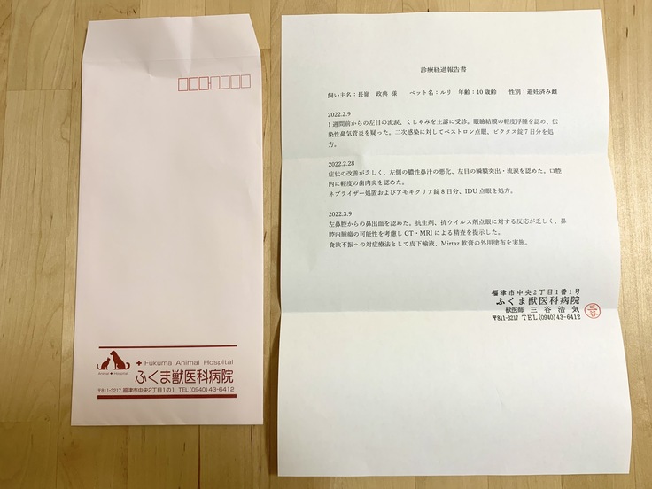 ※3/9以前の近所の病院の診療費のレシートを捨ててしまっていたので、医師による手書きの治療経過を発行して貰えることになりました。一週間かかるとのことで後に掲載しようとおもいます。(文書料 1,000円)【3/17追記:以下添付します】
