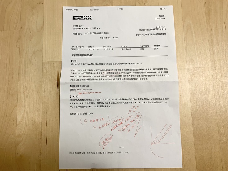 3/28(月) 病理検査の結果がかえってきました
