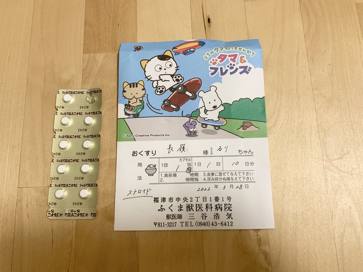 今日はステロイドと、回復食の缶詰を処方してもらいました。