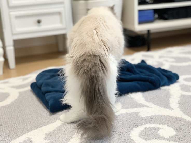 いつもはぴんっ!と上向きの自慢のふわふわしっぽも、しゅん、、としてしまっています。