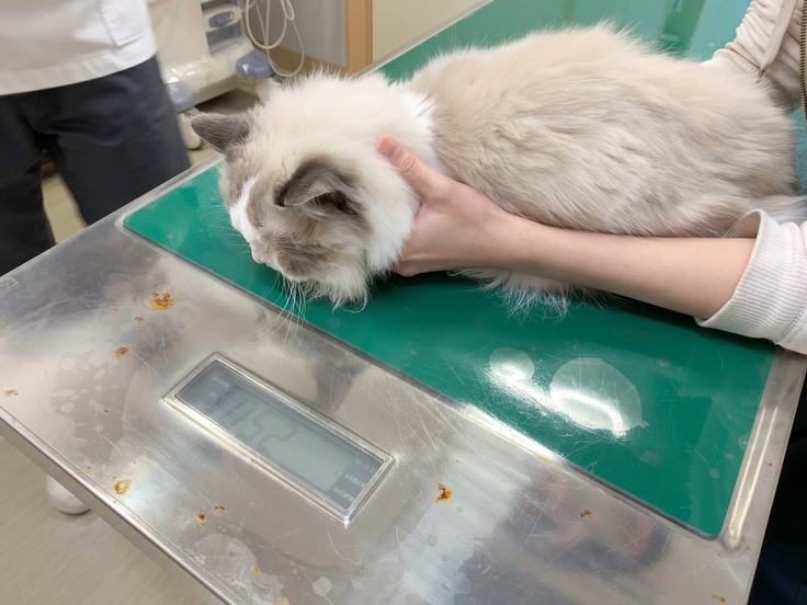 体重が落ちていることに関しては、腫瘍の影響で重たい筋肉から落ちていくので落ちる事はしかたないですが、落ち方が緩やかになってきているので、ある程度で減りは落ちつくと思います。とのことでした。(すこしホッ。)