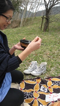 おじいちゃんおばあちゃんに寄付する予定の溜め塗りのお椀をもって、