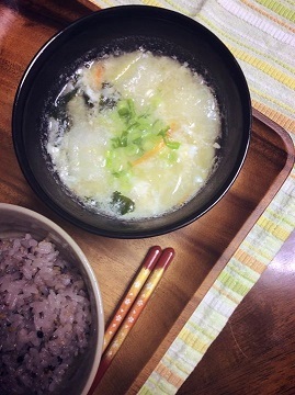 溶き卵みそ汁をベースにお野菜入れて食べるのが