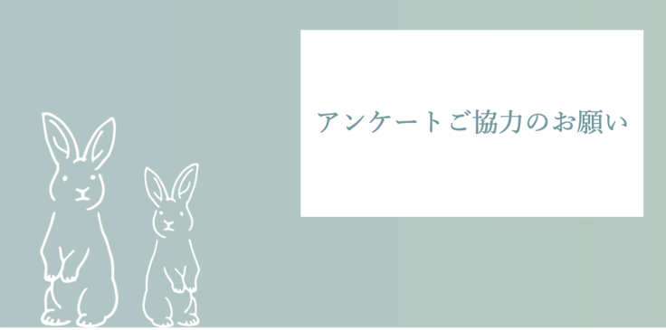 ご協力いただける方は以下より詳細をご覧いただき、ご回答いただけますと幸いです。また、条件にあてはまる方が身近にいらっしゃる方は、ぜひ、うさぎのみみのこと、そして本アンケートについてお伝えいただけますと幸いです。