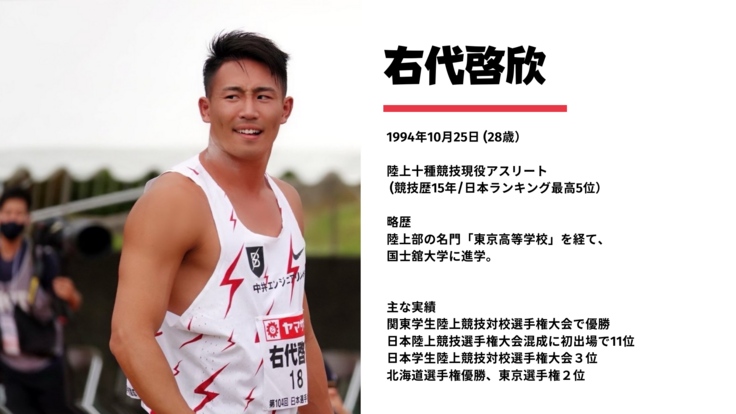 こんにちは。北海道出身の陸上十種競技現役アスリートの右代啓欣です。