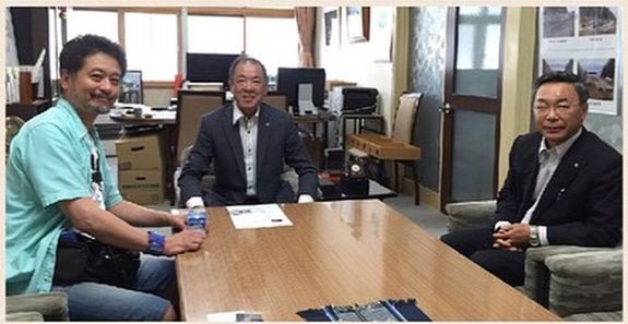 左から出淵晴彦、石原村長、袰岩教育長(田野畑村村長室にて)