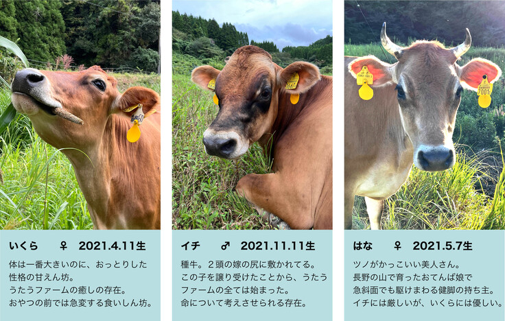 「うたうファーム」という名前は、牛、自然、人が響き合い、生かし合う場所をつくりたい、という思いから名付けました。山が歌う。牛が歌う。響き合い調和する。そんな風景を目指しています。