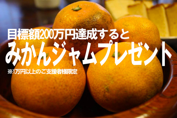 目標金額200万円達成すると、みかんジャムプレゼント!