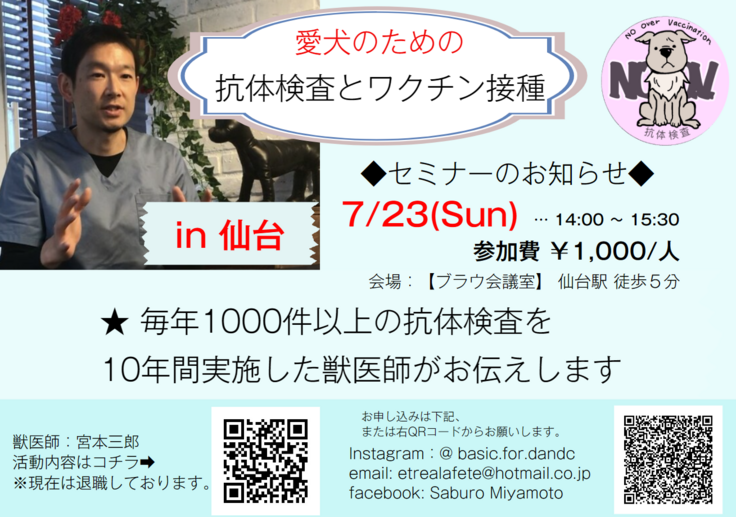 また、大阪と神戸の動物専門学校の先生も来られるなど、犬の抗体検査とワクチン接種についての考え方が、今後生徒さんにも伝わることが期待できました。