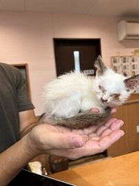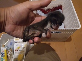 一般の方が発見し、救出、当団体が引き継ぎましたがすでにミルクを飲む力もなく残念ながら息を引き取りました。