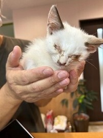 保護時、猫ヘルペス+鼻気管炎、結膜炎に感染。