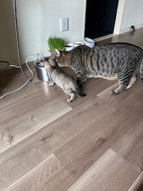 最初の数日はご家族や先住猫ちゃんに警戒していたそうですが、すぐに慣れて仲良しに♪