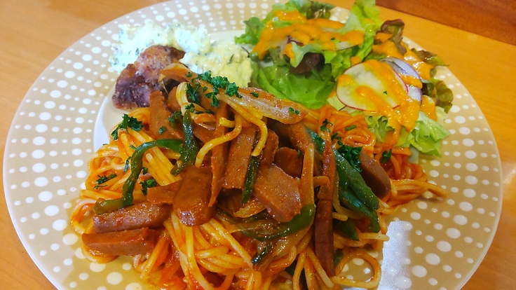 子どもが大好きなナポリタンをヴィーガンにアレンジ出来ないか?と試作を頑張っております。