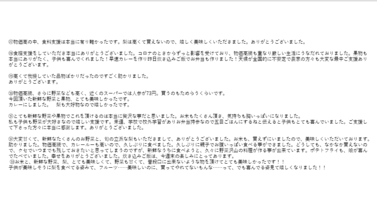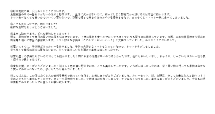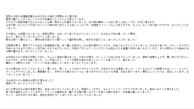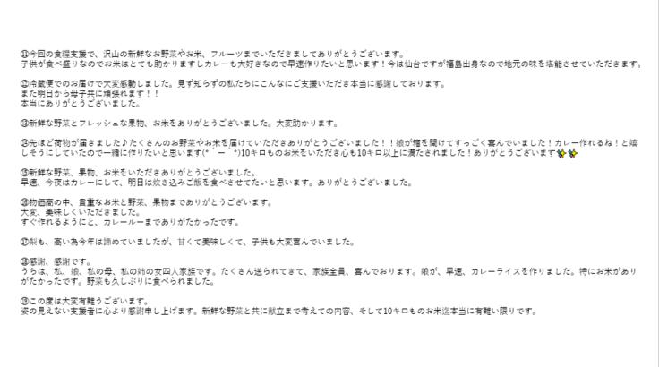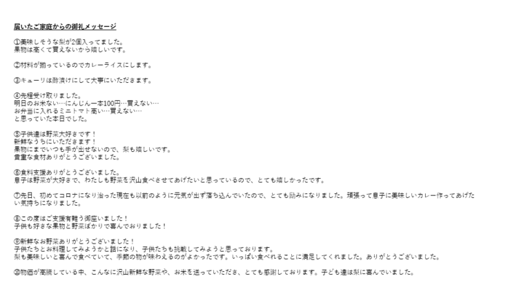 届いたご家庭より沢山の感謝・御礼のメッセージが届きました。