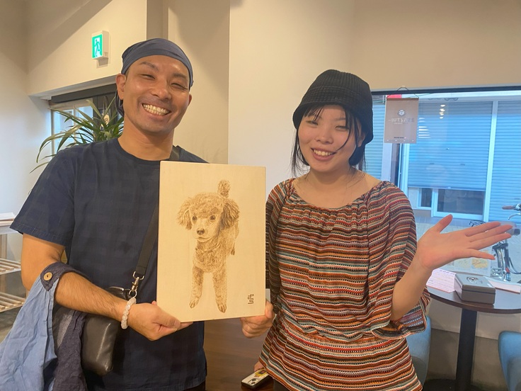赤岩さんは指圧の先生、というより、SGSGの利用者にとっては作りお菓子を差し入れしてくれる方のイメージが強いと思います。また、無類の愛犬家でもあり、SGSGに出入りしている高校生アーティストに、自慢のワンちゃんの絵をオーダーしていました。