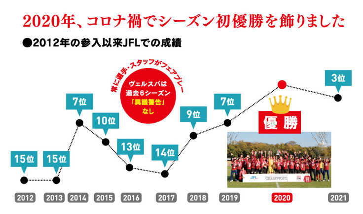 ヴェルスパ大分は2003年の設立以来、ファンと地域の皆様と一緒に少しずつ前進し、2020年にJFL初優勝を果たすことができました。本当に数多くの方々に支えて頂きながら、進んできたクラブです。