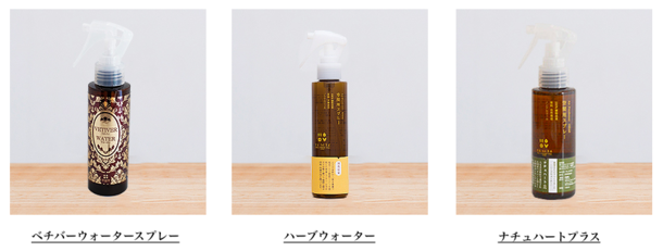 ☆真ん中のハーブウォーターはベチバーの葉と根を水蒸気蒸留しただけのもの。