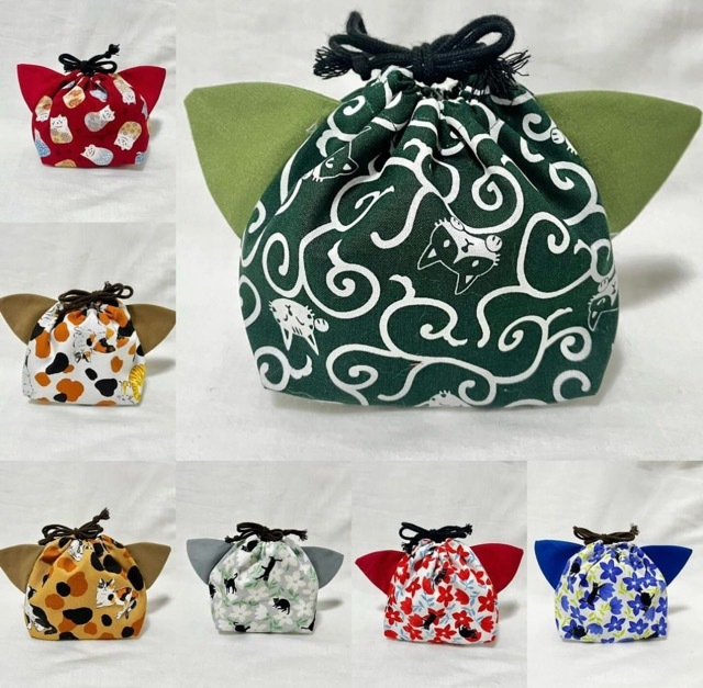 今回のクラウドファンディングのリターン品に、彩の猫の人気の手作りグッズ、「猫耳ポーチ」と「がまぐち」を用意しました。