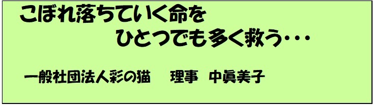 私は彩の猫の活動の一つ、「殺処分されやすい負傷猫、高齢猫、病気の猫を優先的に引き取り命を繋ぐ」ことをやるために活動に携わってきました。