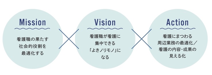 『現場目線で使いやすいシステムを普及させることで、周辺業務を最適化し、看護師が「看護」に集中できる環境を整えること』