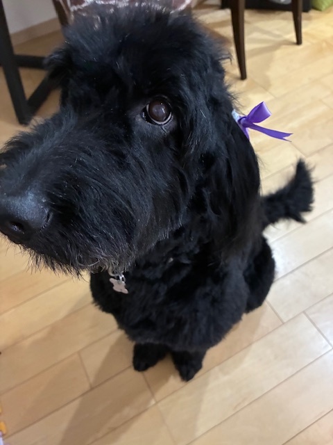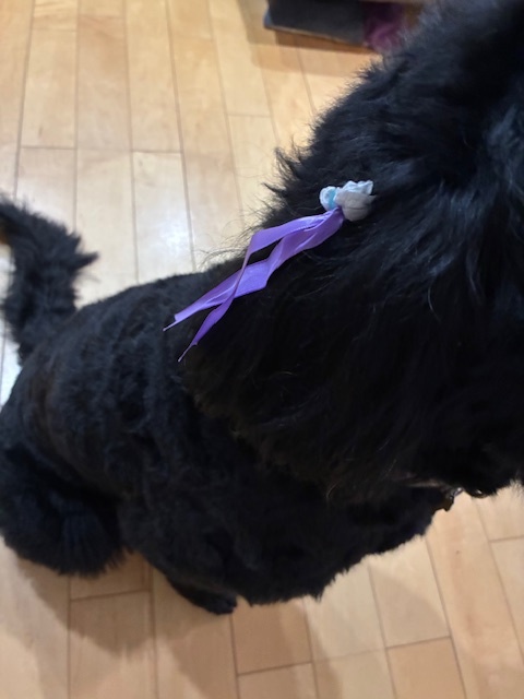 先日のトリミングで、可愛くリボンつけてくれたのに・・・