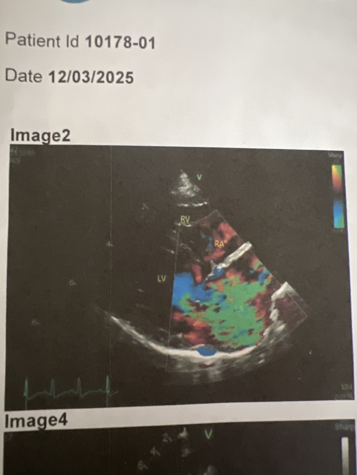 • 左心室(LV)から左心房(LA)へ血液が逆流している様子が、緑色を含むモザイク状のパターンとして確認できます。