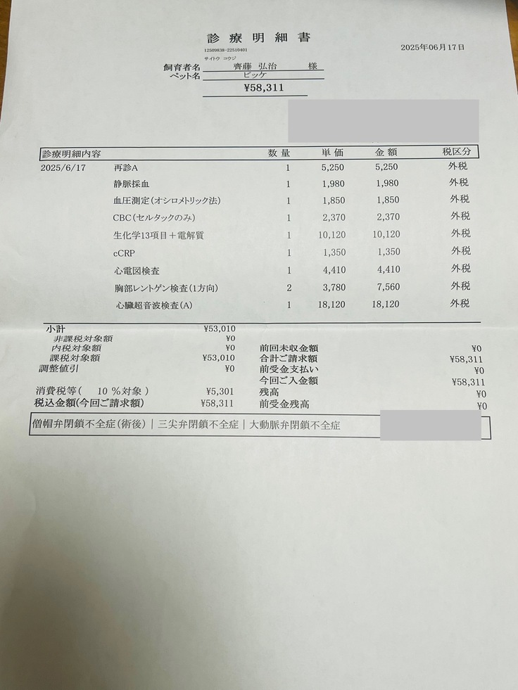 一部逆流は認められましたが、心臓肥大もなく経過観察となりました。