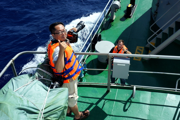 (2014年7月、パラセル諸島へ向かうベトナム巡視艇船上の筆者<左>)