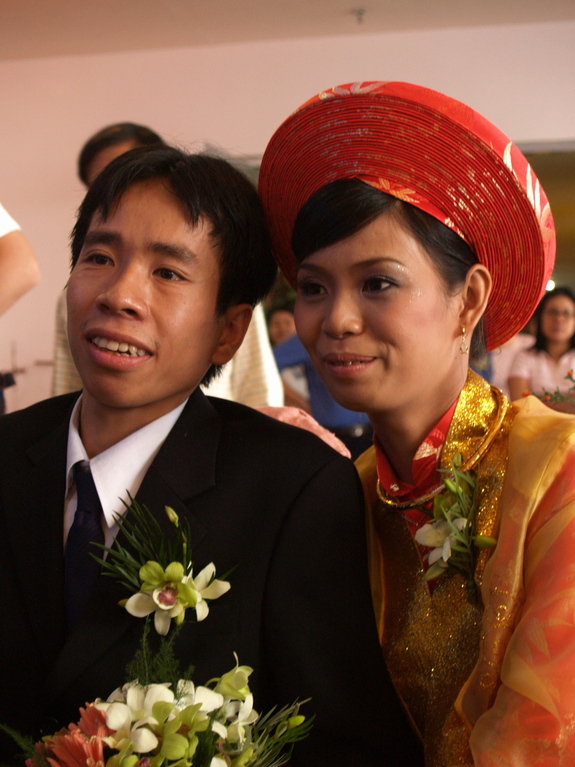 (1988年に分離手術が成功した「ベトちゃんドクちゃん」の弟ドクさんと妻のティエンさん 2010年12月の結婚式にて)