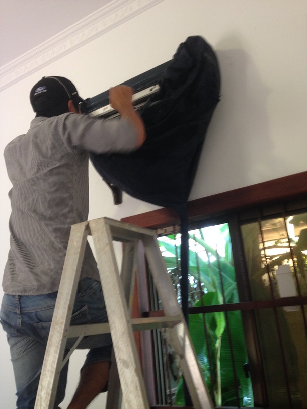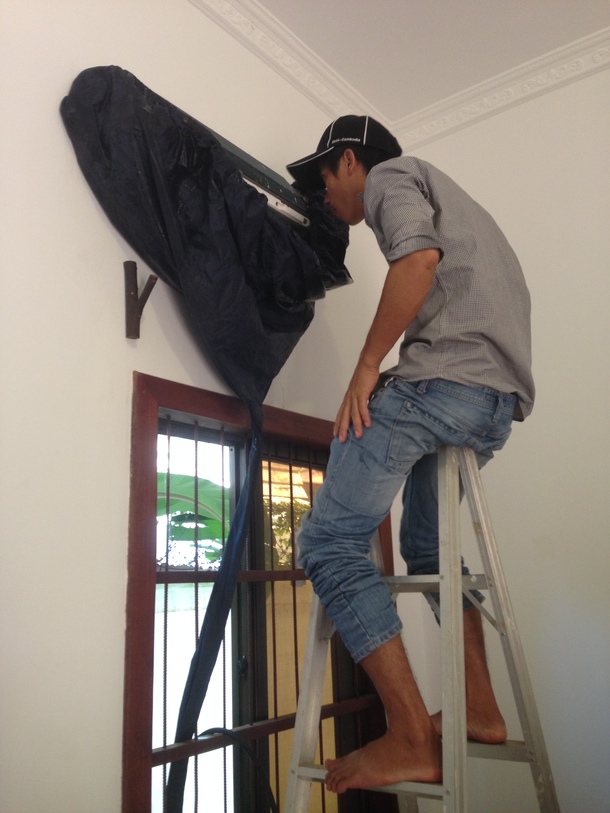 エアコンの修理。カンボジアでの経営上、負担になりやすい電気。