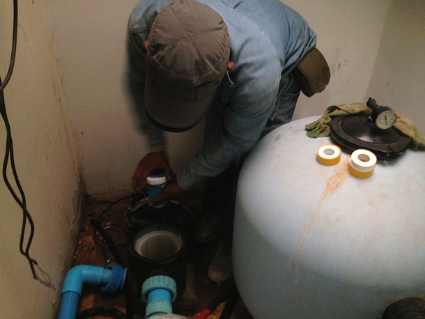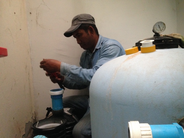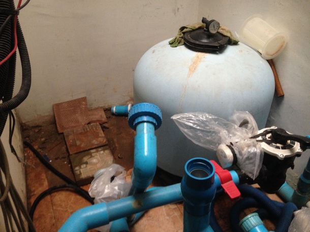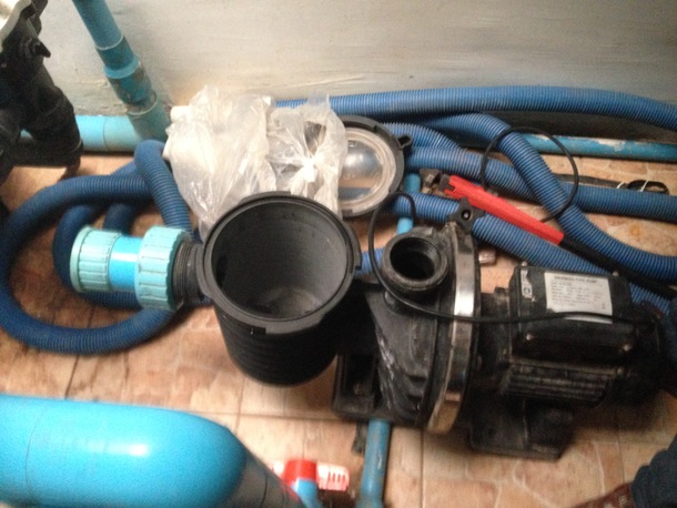 ケガする人も出ているプール回りのこの部分。このかけらが原因で洗浄機も壊れる・・・ずーーっと頭を抱えていました。
