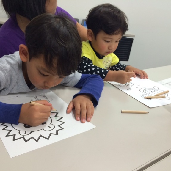 親御さんたちが話を来ている間、参加した子どもたちとボランティアが塗り絵を楽しみました。