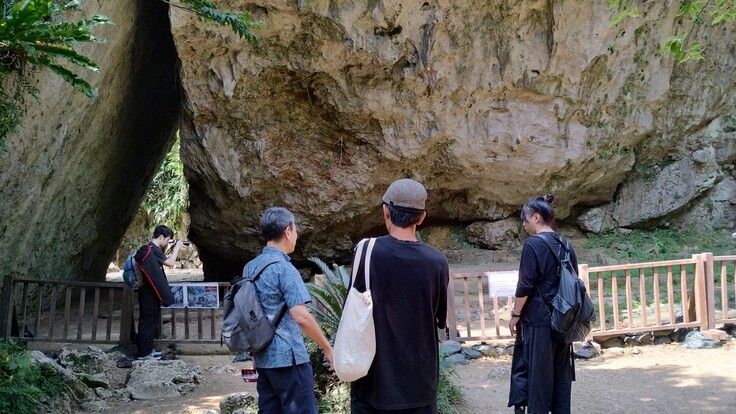 ジャングルのような山道の中で、その道にちなんだ組踊の物語を伺いながら、枝葉をかき分け進んだ先で出会った王族のお墓。