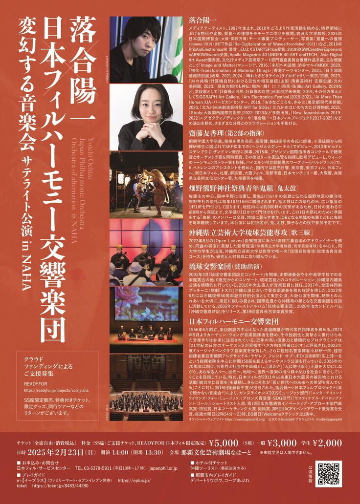 そして、琉球古典音楽は、藤倉大:Open Leavesが広く皆様に愛されることを願って沖縄県立芸術大学琉球芸能専攻(歌三線)の皆さんにご出演いただきます。