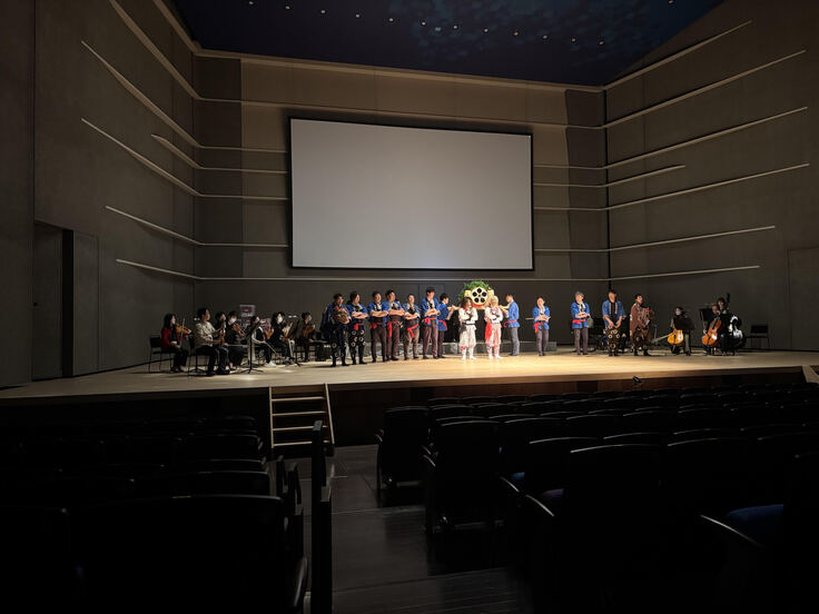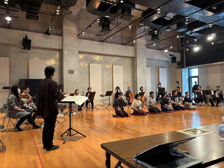佐渡と沖縄から多くのお客様をお迎えして行った大規模なサテライト公演。舞台上の出演者は、落合陽一(映像)、斎藤友香理(指揮)を含め42名、昨年の那覇サテライト公演の2倍もの規模となりました。