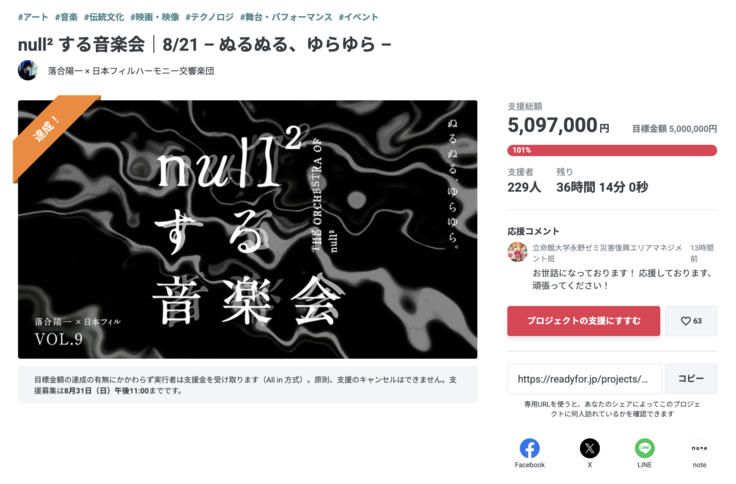 あらためて、これまでのご支援に深く感謝するとともに、重ねてのご支援を心よりお願い申し上げます。どうかこの挑戦の仲間として、最後まで並走してください。皆さまと共に、音楽の喜びを未来へ手渡していけますよう、謙虚に、丁寧に、積み重ねてまいります。