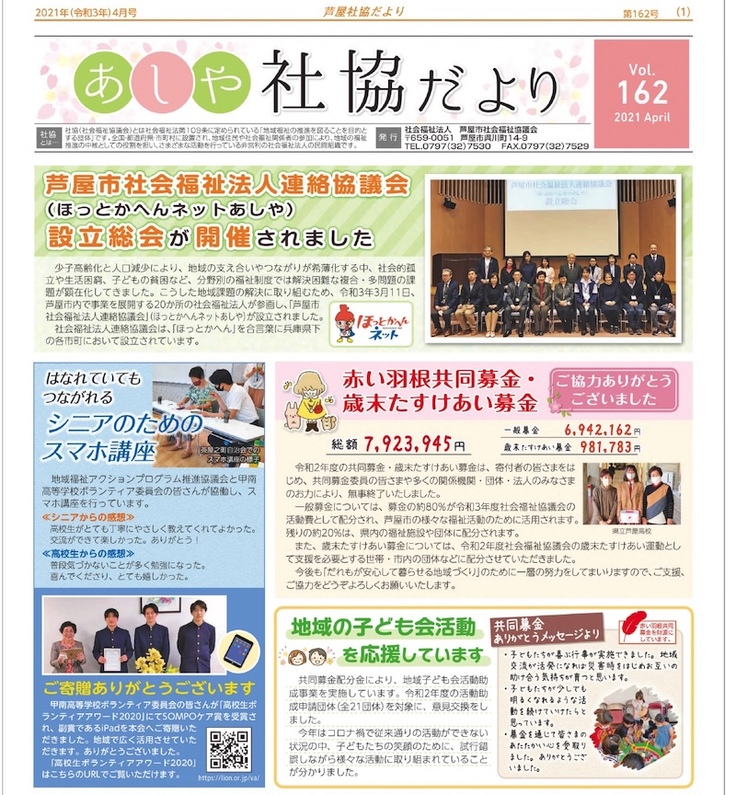 昨年は「SOMPOケア賞」を受賞しましたが、副賞で贈られたiPadを同会に寄贈されたということで、「あしや社協だより」に紹介されています。