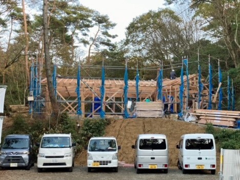 県道からもよく見える場所に建っておりますので、車で通過する方にも進み具合がよく見えます。これから本格的な冬が訪れる六甲山ですが、来春のオープンが今から楽しみです。