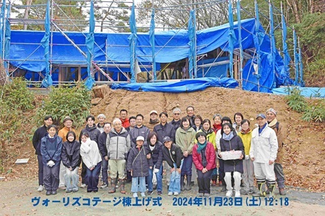 みなさまから大きなご支援をいただきましたヴォーリズ・コテージですが、9月から着々と工事を進めております。先日、上棟式 ~建物の骨組みが組みあがったことをお祝いする式~ を関係者が集まって執り行いました。