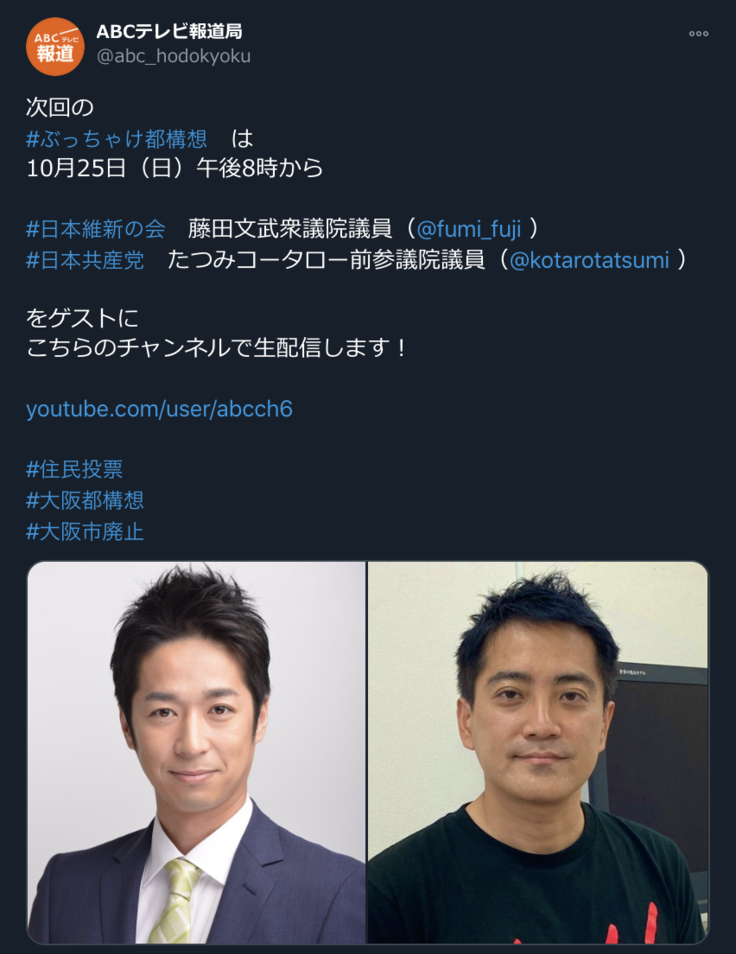 タイトルの通りですが、ABCテレビさんの討論企画『ぶっちゃけ都構想』にUMF代表の高村治輝が出演します!