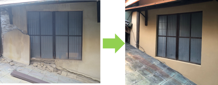 ○外壁の崩落 (修理後)